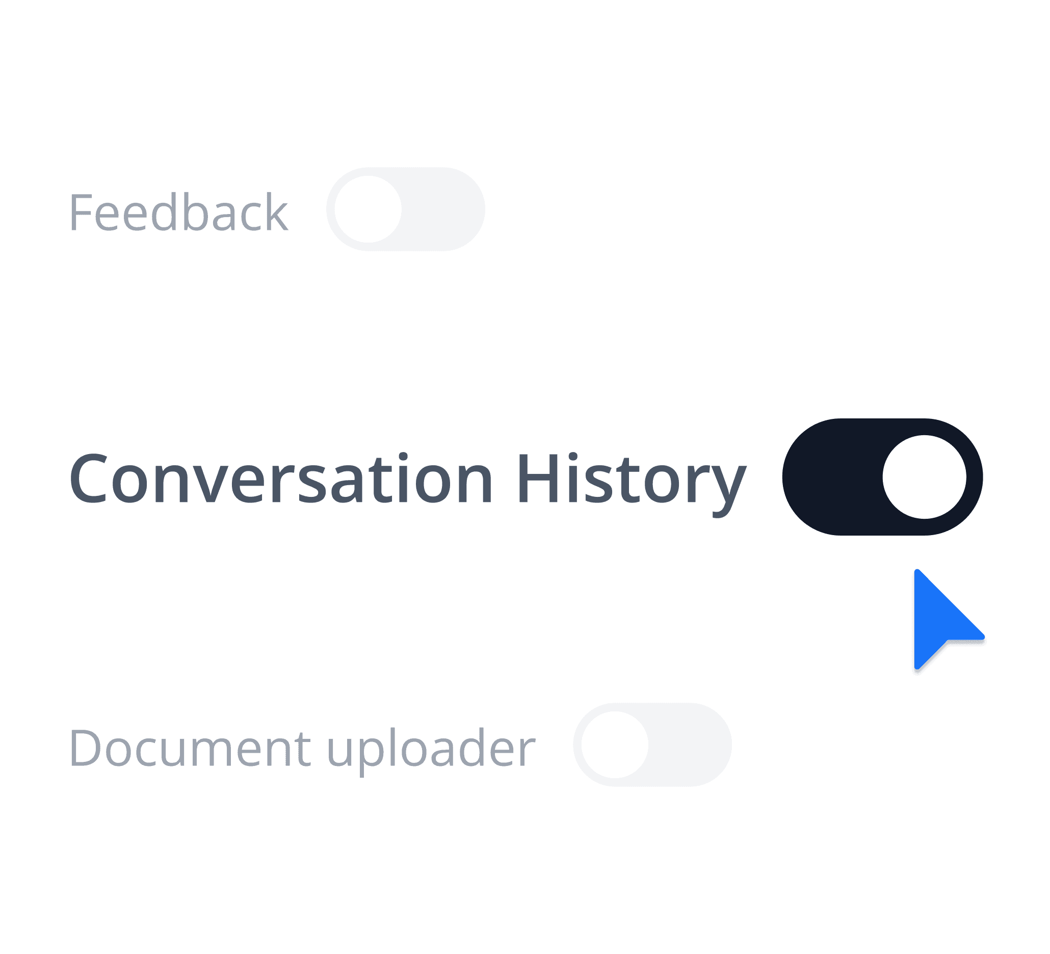Enable and disable tooling, such as conversation history at an administrator level.